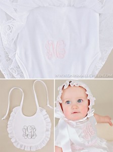 Today, we’re all about monograms. We love offering monograms on our baby clothes and gifts. What a wonderful way to add a personal touch to your little one’s special outfit! A gift becomes so much more when embroidered with her name or initials.