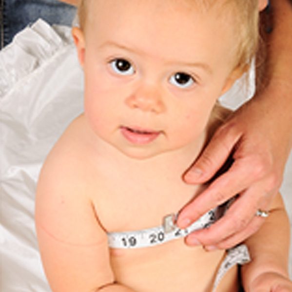 -the baby (you want to be sure he/she is unclothed or close to it…measuring over a snug-fitting undershirt is fine; over a heavy top is not)
