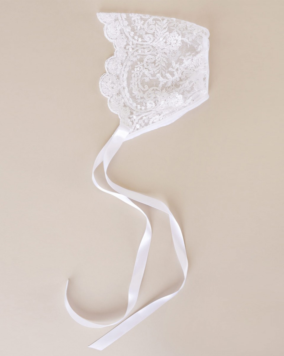 White Embroidered Lace Bonnet 1