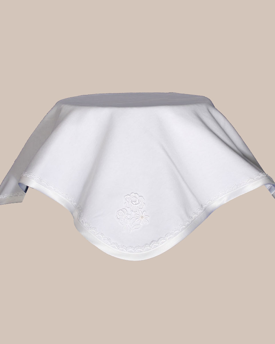 Cotton Christening Blanket with Lace and Flower Applique - One Small Child Cotton Christening Blanket with Lace and Flower Applique 1 Cotton Christening Blanket with Lace and Flower Applique – One Small Child