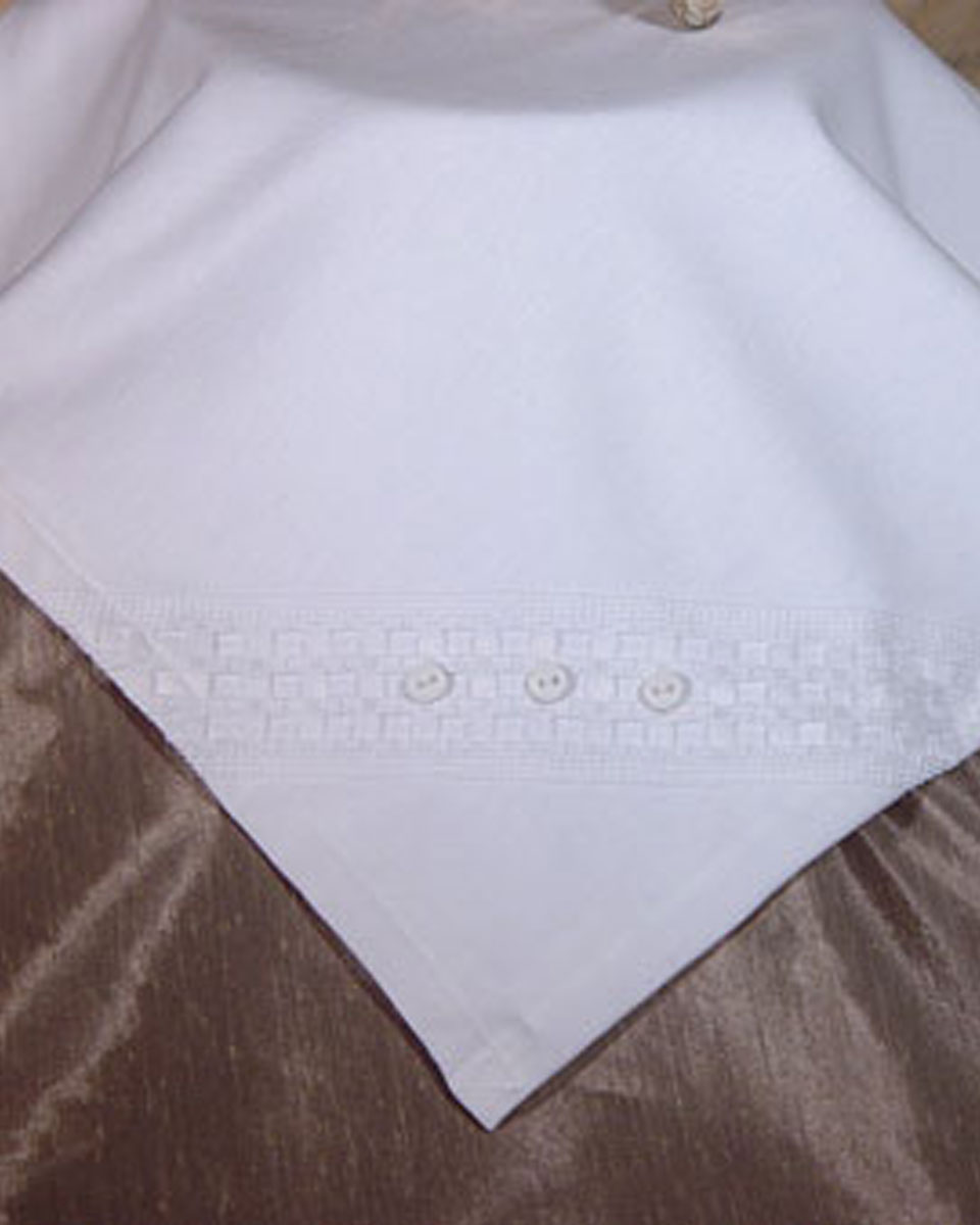 Elegant White Christening Receiver Blanket with Windowpane Trim and Buttons 1