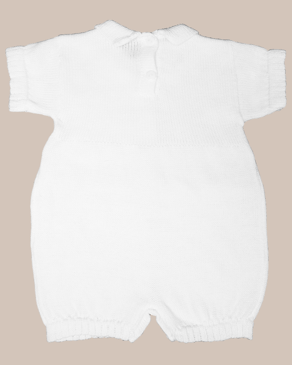 Boy’s Short Sleeve Soft White Cotton Knit Romper with Vest