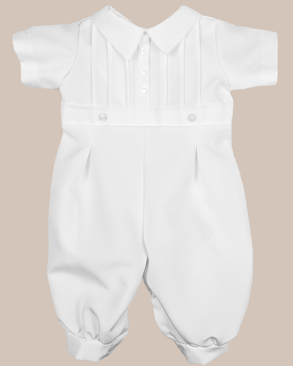Boys White Short Sleeve Collared Romper Coverall with Pin-Tucking - One Small Child MA-CHRISTOPHER-BW-osc Boys White Short Sleeve Collared Romper Coverall with Pin-Tucking – One Small Child