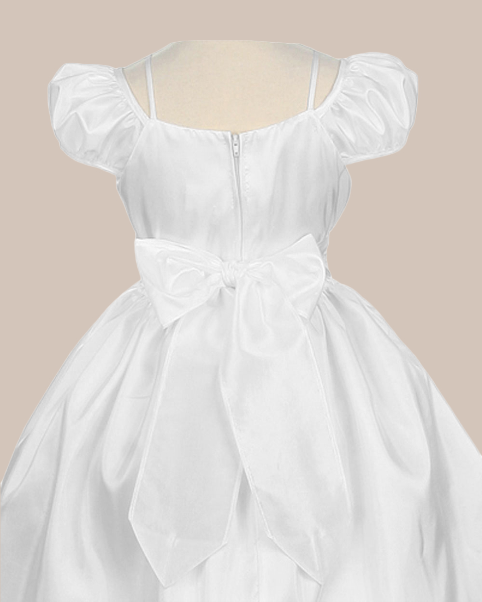 Classic White Taffeta Communion Dress with Flower - One Small Child SK-3003-DETAIL-osc Classic White Taffeta Communion Dress with Flower – One Small Child