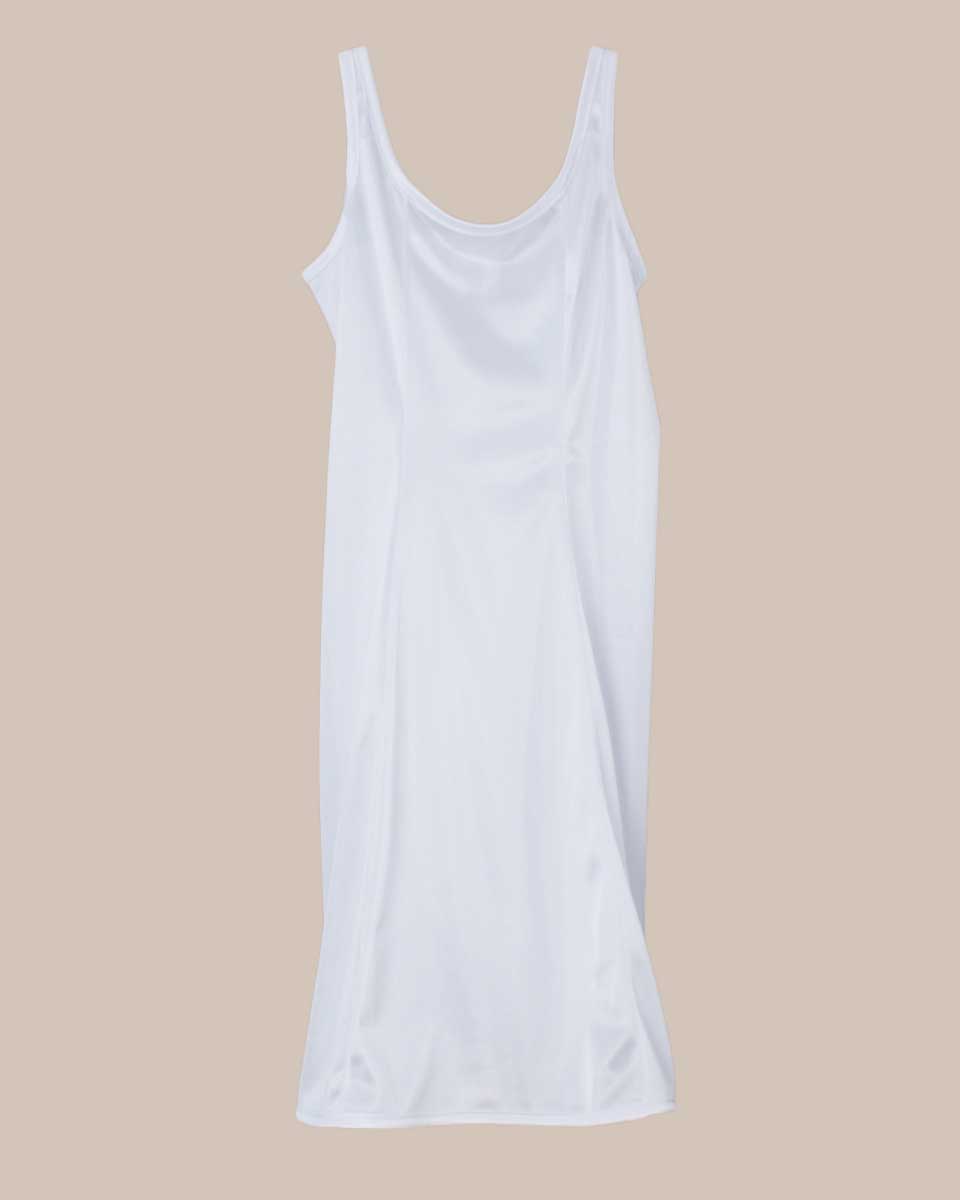 Girls White Simple Princess Style Tea Length Nylon Slip with Adjustable Straps – One Small Child