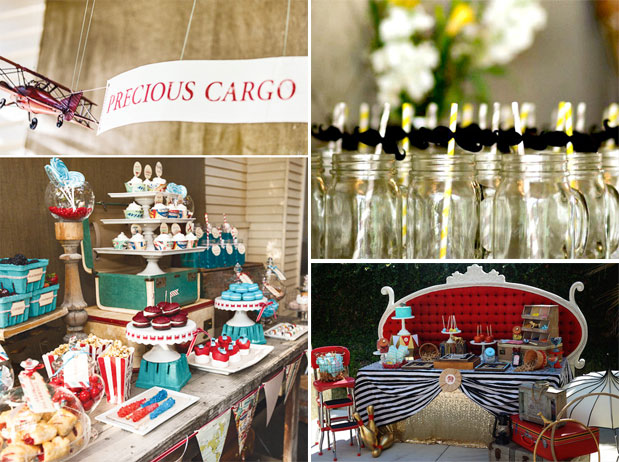 {Left: Precious Cargo from Hostess with the Mostess | Top Right: Little Man and Lemonade from First Home Love Life | Bottom Right: Vintage Circus from Kara’s Party Ideas}