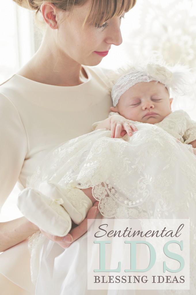 -Dress your little one in a sentimental outfit. There are so many ideas for this! You can make (or have someone make) a blessing dress for your little girl out of your wedding dress. Dress them in your blessing dress or your husband’s blessing outfit. Use an heirloom blanket. That gorgeous knitted blanket that your grandmother made would make a sentimental addition to your little one’s outfit.