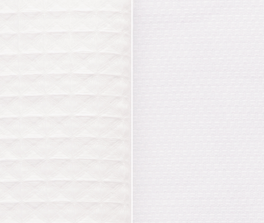 This gown is made with matte satin. Our satin is a pure white and lustrous mid-weight fabric. This combination of color and density makes for a temperature comfy baby on any Spring day.