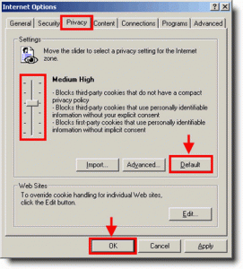- Click the Default button (or manually slide the bar down to Medium) under Settings. Click OK