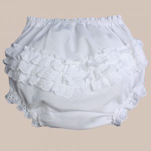 Baby Girls White Elastic Bloomer Diaper Cover with Embroidered Eyelet Edging