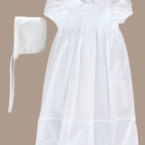 Girls 34″ Pleated Heirloom Christening Gown with Bonnet and Slip