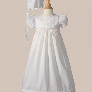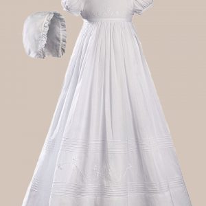 Girls 34″ Pleated Heirloom Christening Gown with Bonnet and Slip