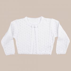 Girls White 100% Cotton Sweater with Tear Drop Pattern and Scalloped Trim