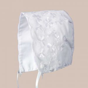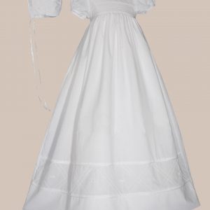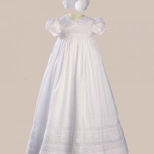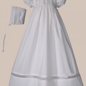 Girls 30″ Poly Cotton Christening Gown with Organza Ruching Accents and Bonnet