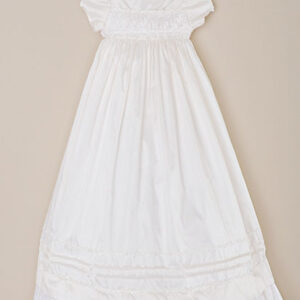 Girls 34″ Poly Cotton Organza Christening Gown with French Lace and Pin Tucking