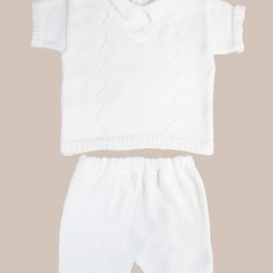 Boy’s White 2 Piece Cotton Knit Short Sleeve Sweater Set
