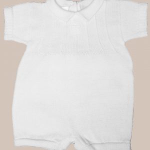 Boy’s Short Sleeve Soft White Cotton Knit Romper with Vest