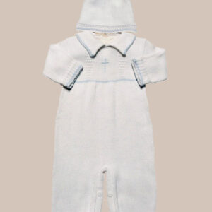 Boy’s Soft Cotton Knit Christening Baptism Longall w/ White Cross and Hat