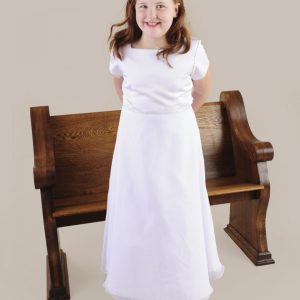 Classic Satin Floral Embroidered Organza Overlay Communion Dress