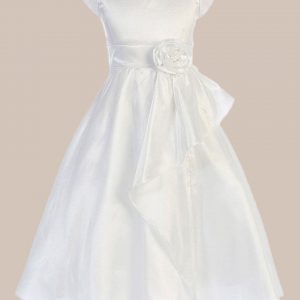 Cascading Taffeta Flower Girl Communion Dress with Taffeta Flower Waist Accent