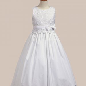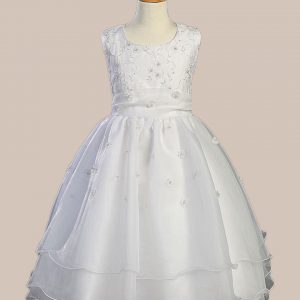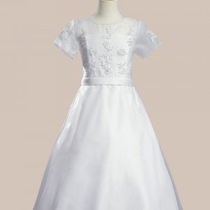 Classic Satin Floral Embroidered Organza Overlay Communion Dress