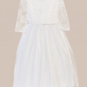 White 3/4 Sleeve Lace Communion Dress with Tulle Skirt