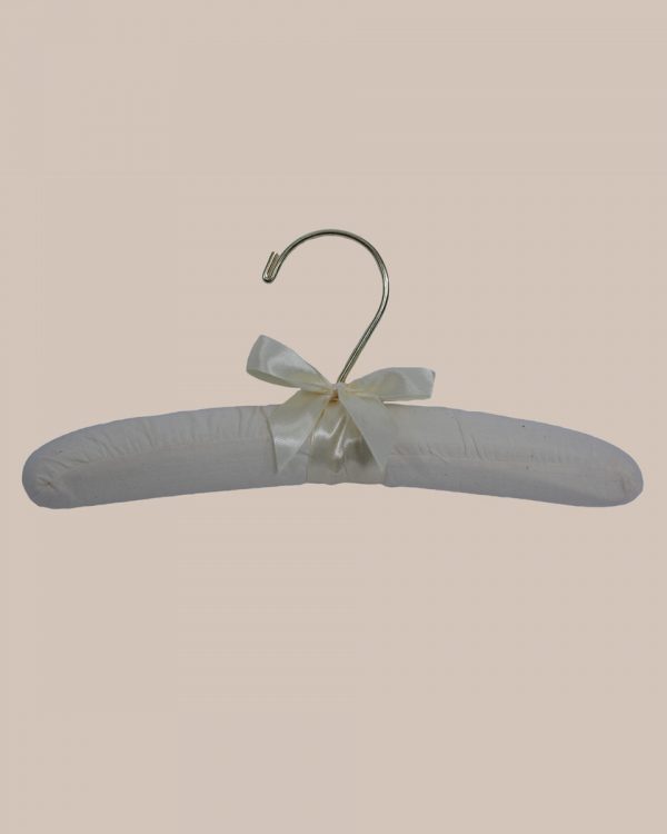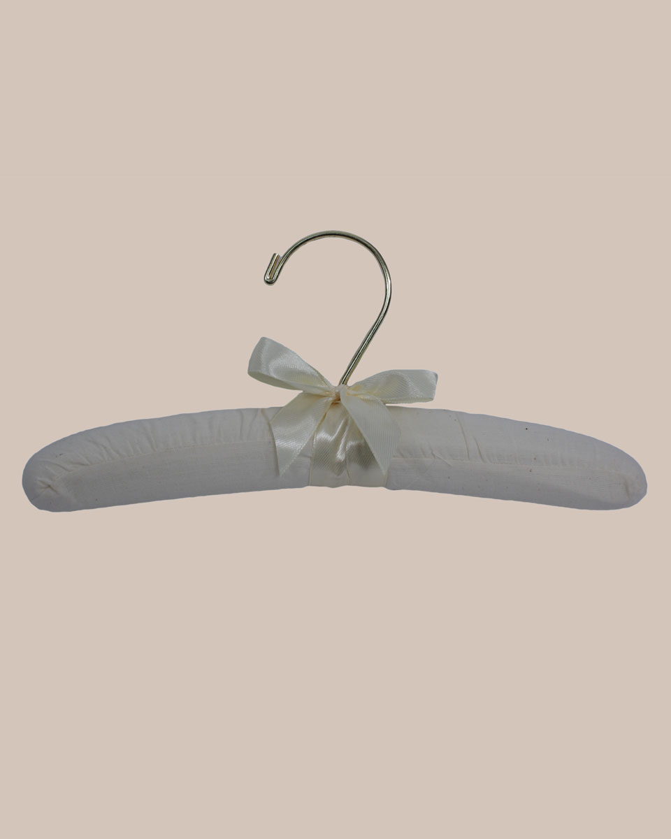 Our 10” muslin hanger is elegant, padded, very strong and will securely hold baby and children’s clothing. Made with cotton muslin and batting.