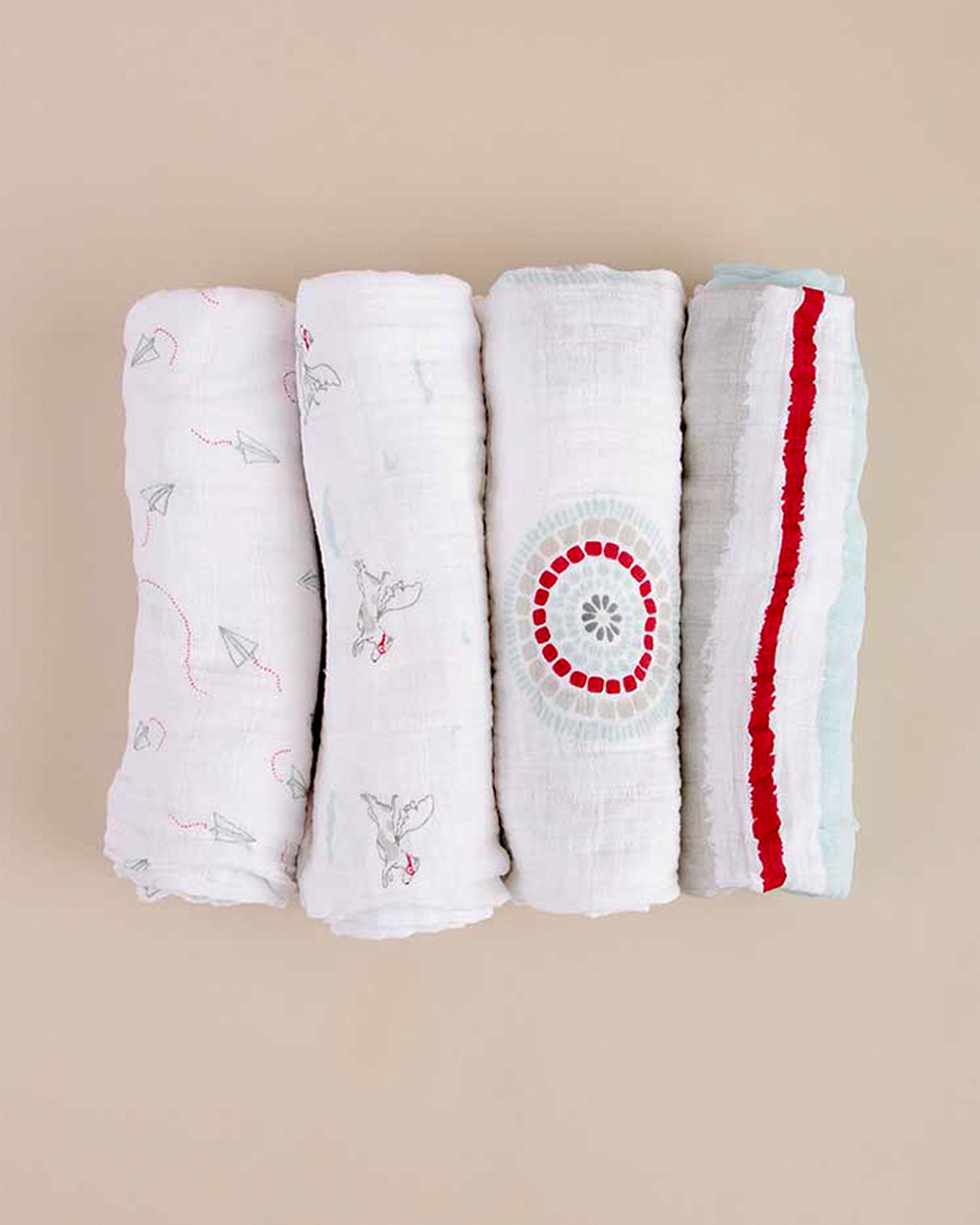 Surprise your favorite mom-to-be with this fantastic tote filled with Aden Anais fantastic swaddling blankets & more: the perfect starter set for her newborn boy’s needs.
