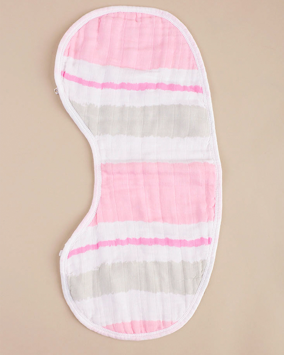 Burpee bib measures approximately 22 3/4″ wide x 10″ deep, doubles as a burp cloth or bib