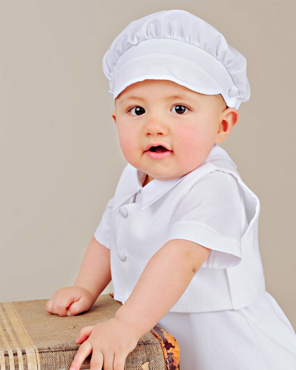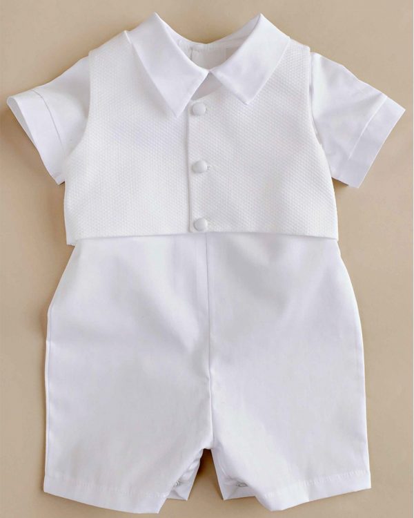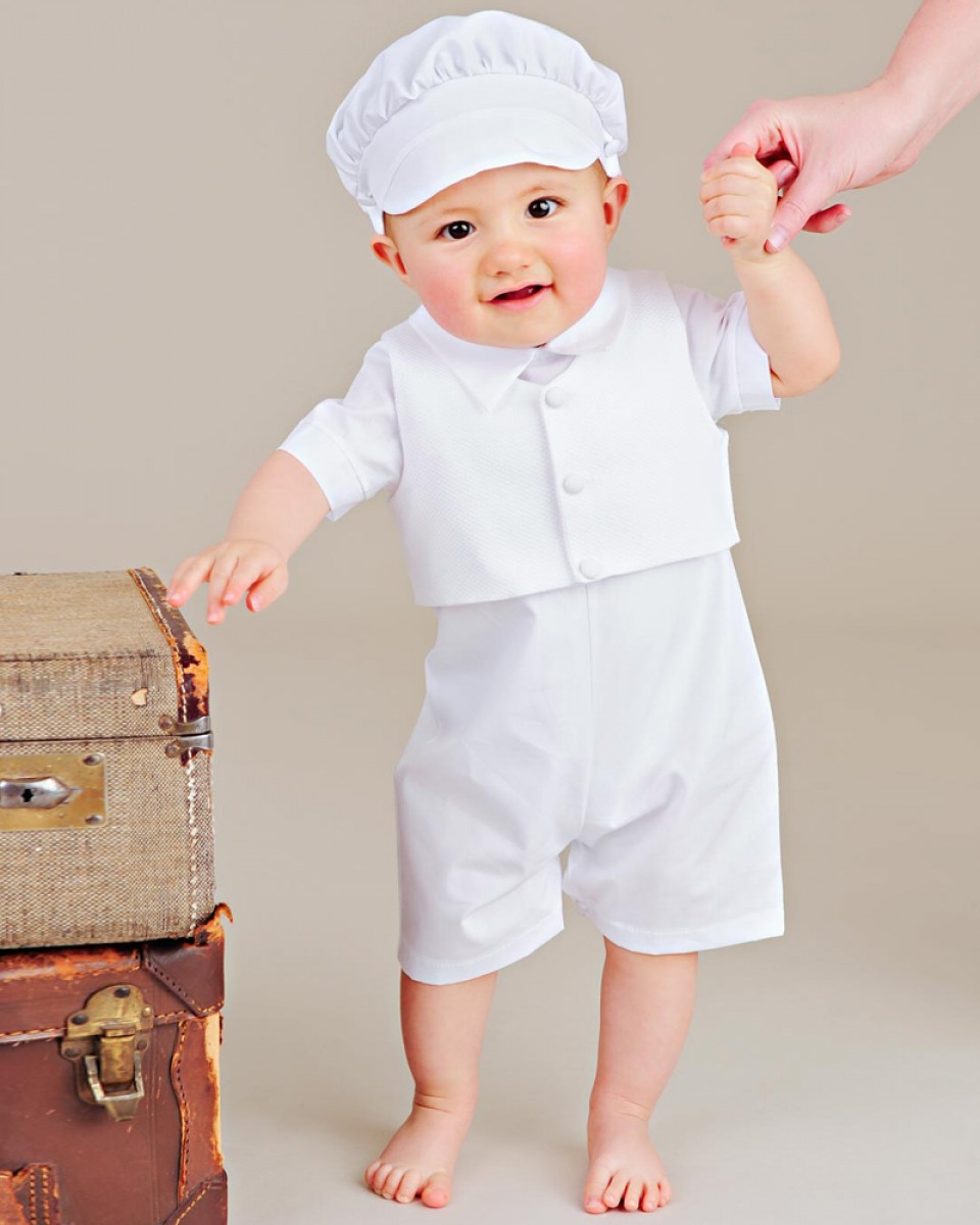 A stately three-piece set that is perfect for your little tiger! A faintly textured vest sits comfortably over a soft cotton romper.