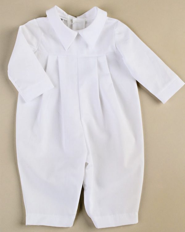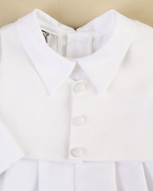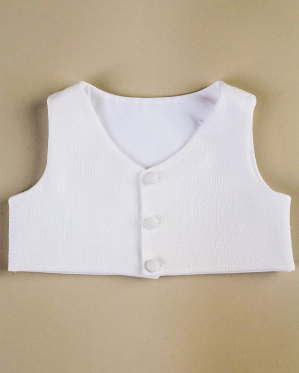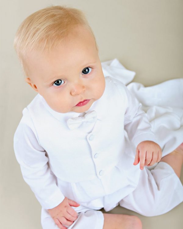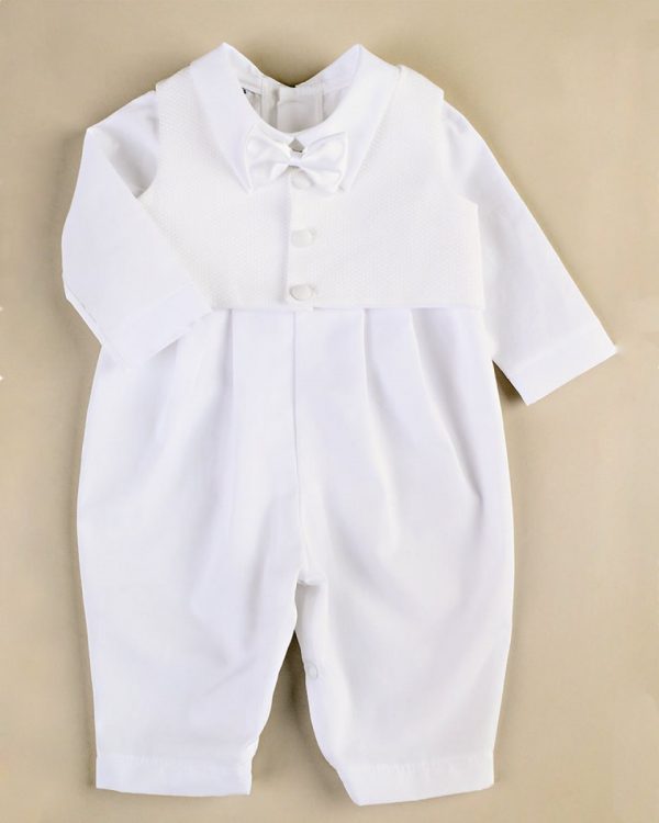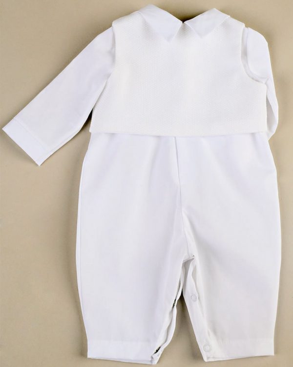 A nicely textured cotton pique vest adds no-frills style to our classic long christening coverall.