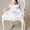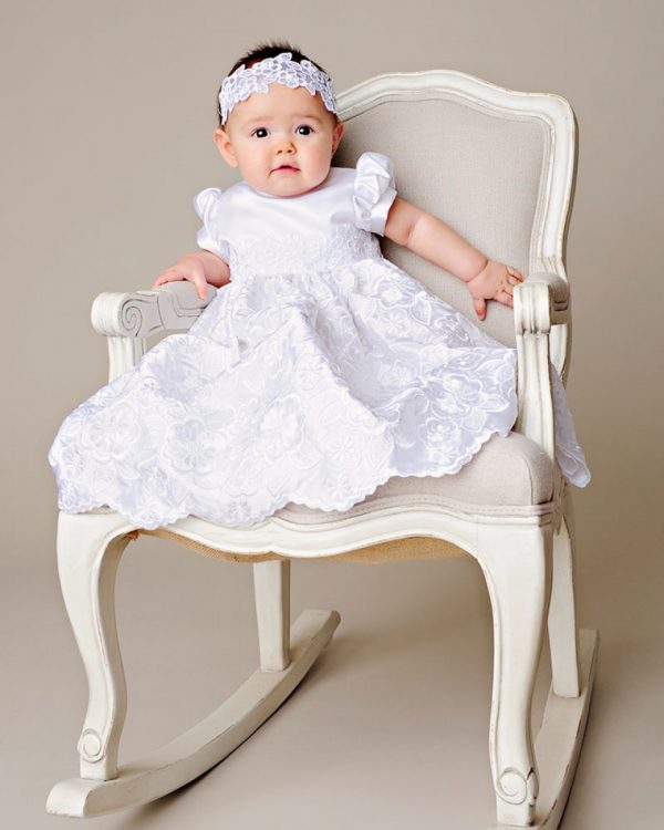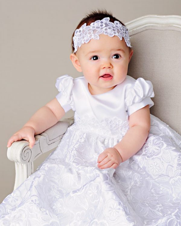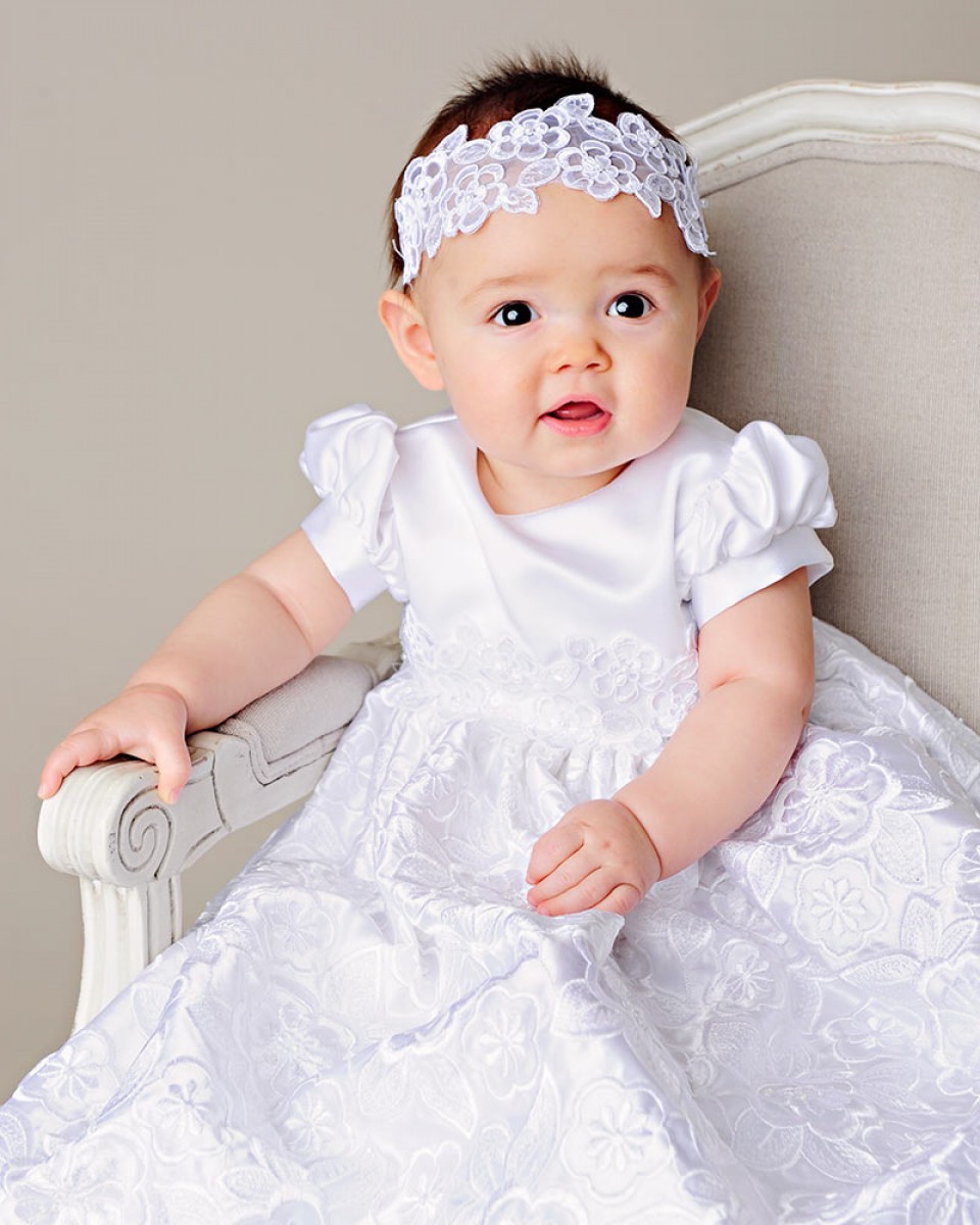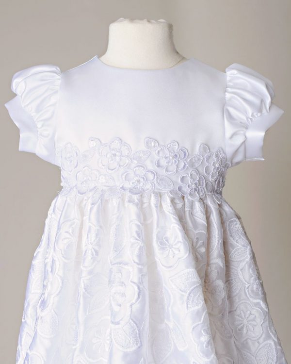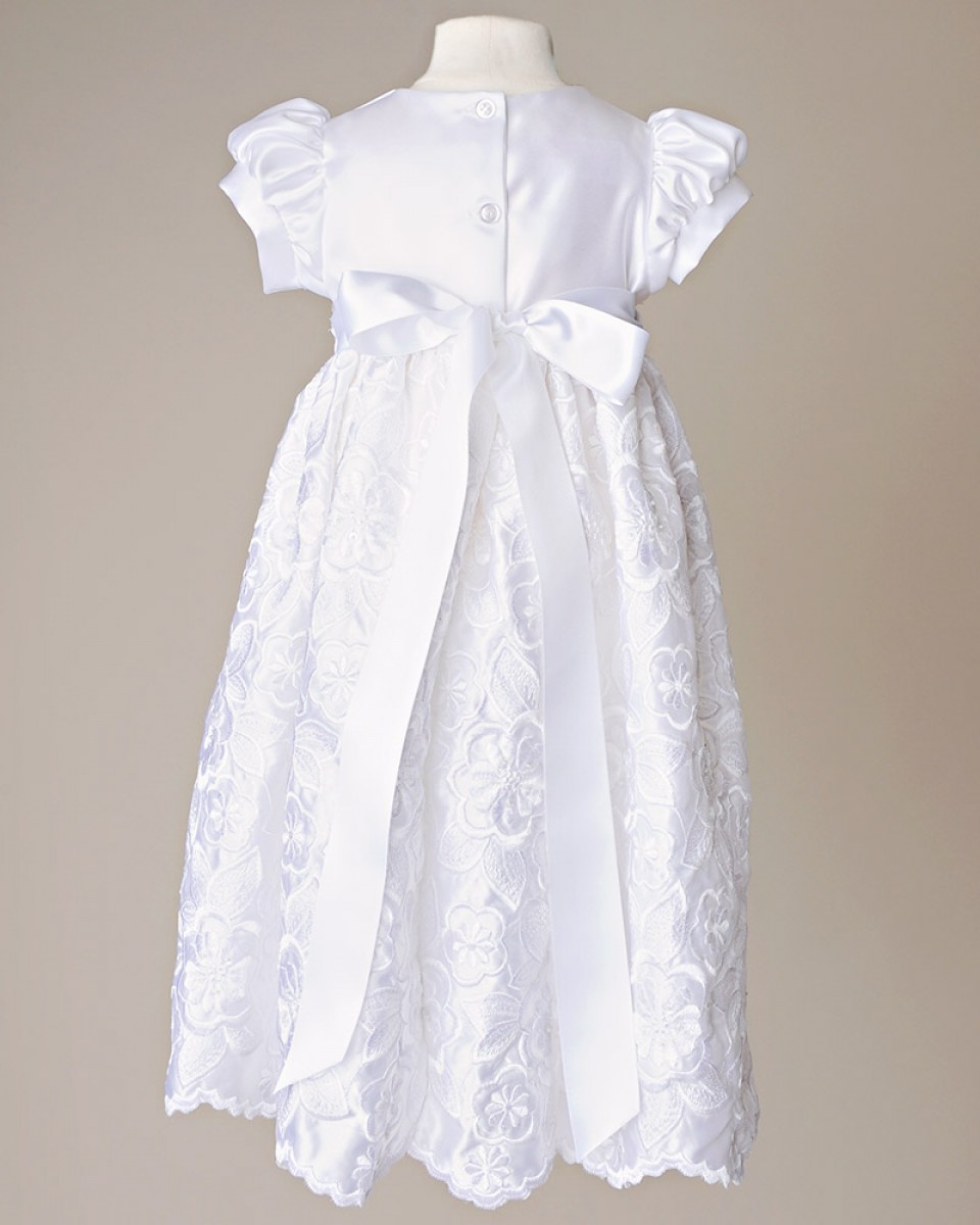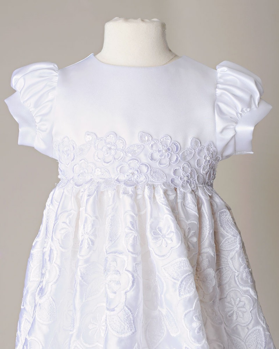 We combined elaborate embroidered-satin for a breathtaking skirt, with a straight-forward satin bodice for the perfect combination of beautiful simplicity.