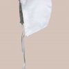 Baby Girls White Poly-Cotton Christening Baptism Hat with Lace Overlay and Flower Accents