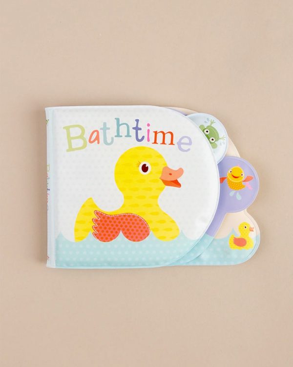 - Waterproof Bathtime book is approximately 5 1/2″ tall x 7″ wide