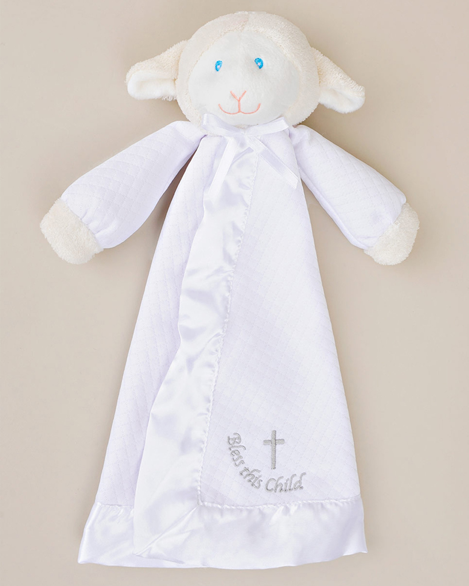 Shop One Small Child » Bless This Child’ Lamb Cuddle Blankie