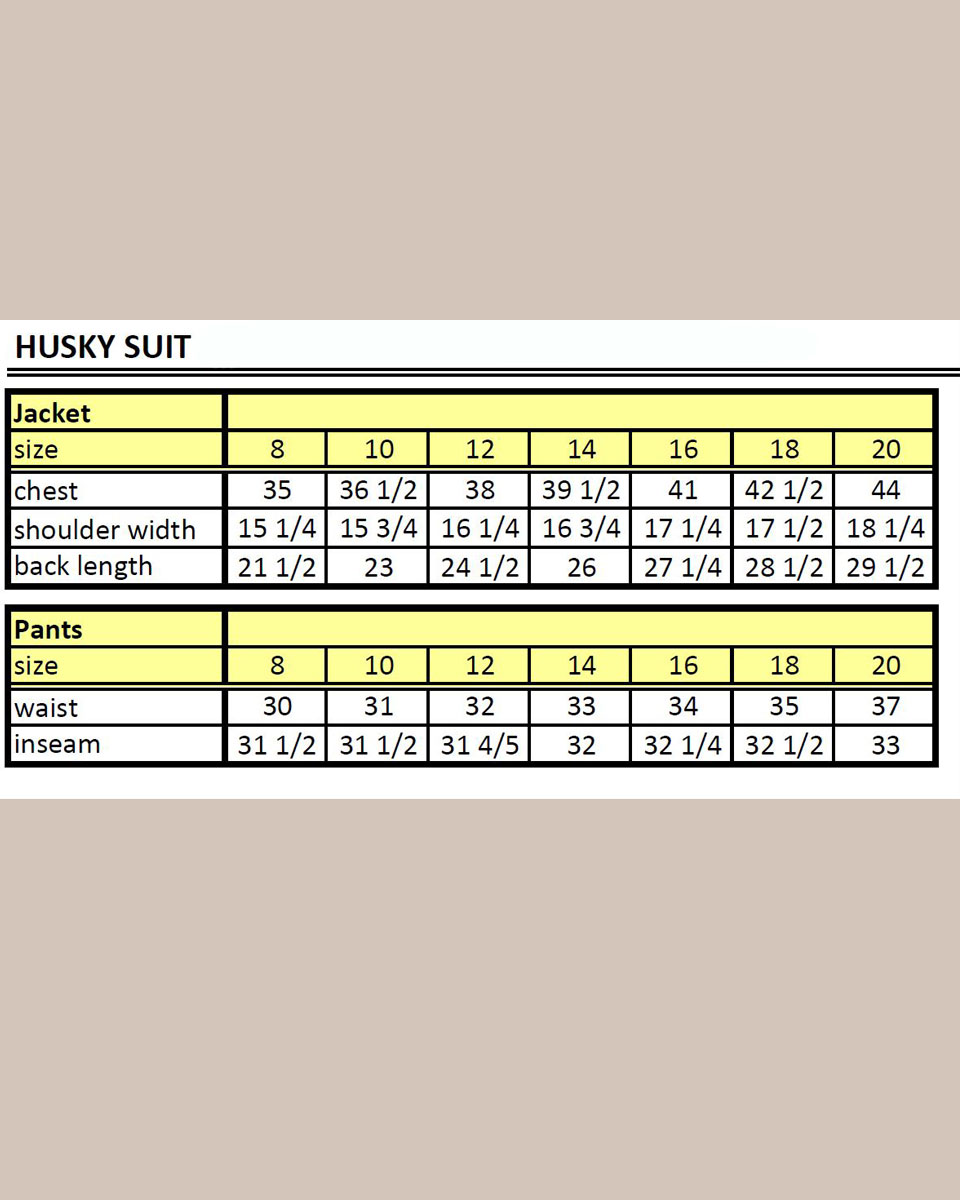 - 2-Button suit Jacket with single back vent and flat front pants with 4-button vest