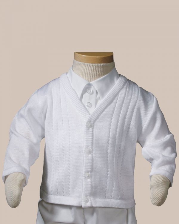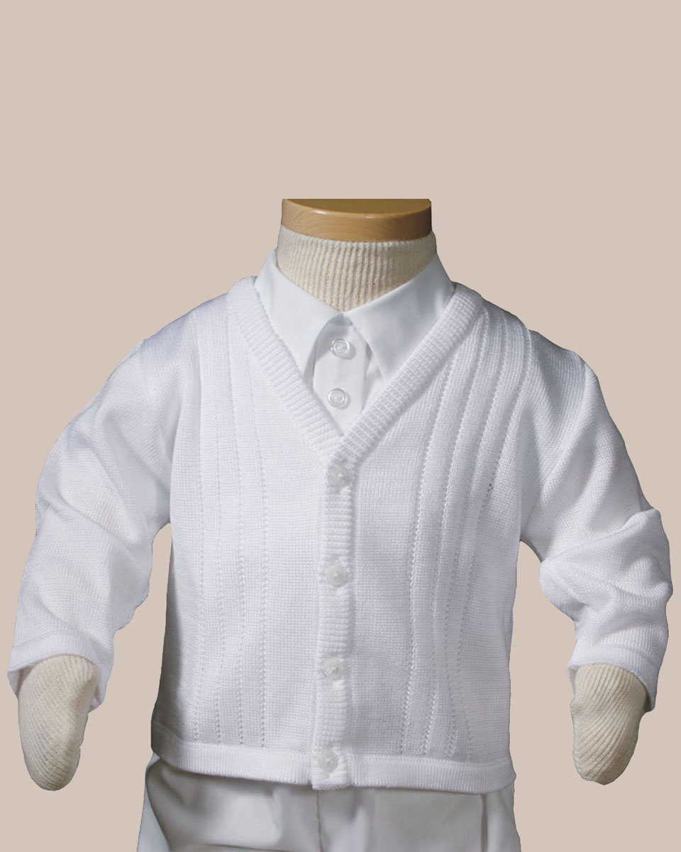 This boy’s 100% combed cotton or acrylic knit sweater is exquisitely finished to provide a soft, comfortable, and stylish fit. Imported. Heirloom Preservation Bag recommended for long-term storage. This handsome sweater is perfect for Christening, Baptism, or any special occasion such as weddings, church presentations, dedications, and keepsake photos. (CKBOYS)