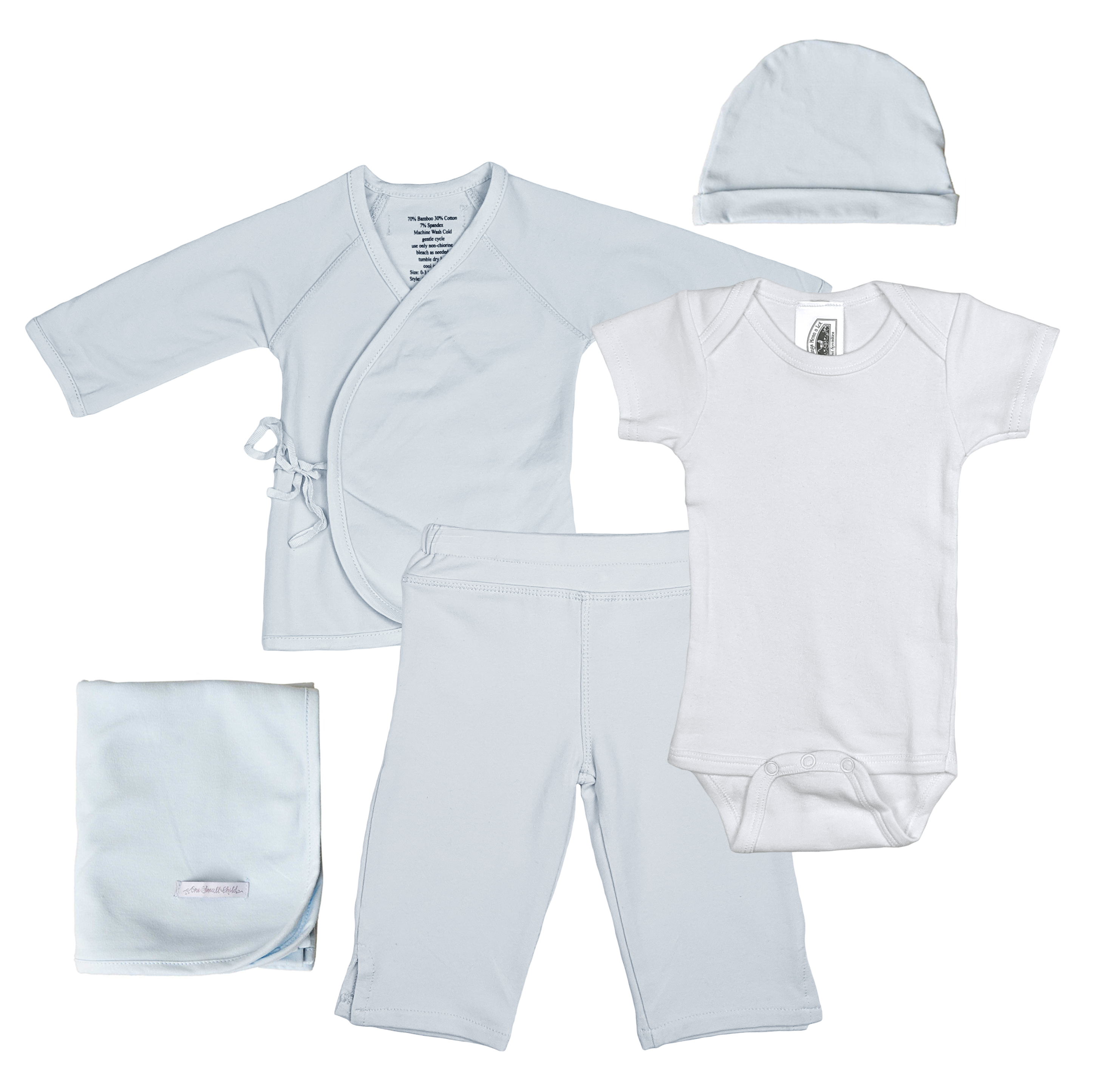 A comfy and ultra-soft bamboo layette set. Perfect for your precious little one! What’s so great about bamboo? It’s a soft, natural fabric that’s anti-fungal, thermal regulating, durable, and machine washable.