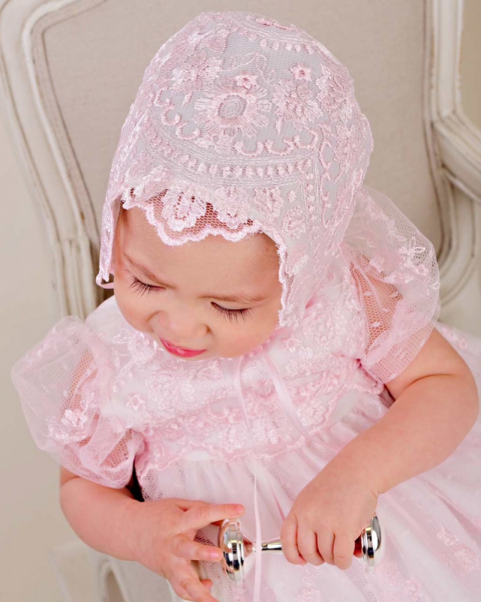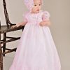 • 3-piece set includes christening gown, cotton slip, and bonnet