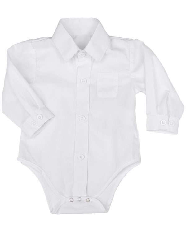 You will find the perfect combination of style and comfort with our Cooper suspender christening outfit. Features a crisp button-up collared shirt romper, pants, bow tie, and suspenders which add sophistication and adorableness. Made from wrinkle resisting 100% polyester for superior durability–what more could you ask for!