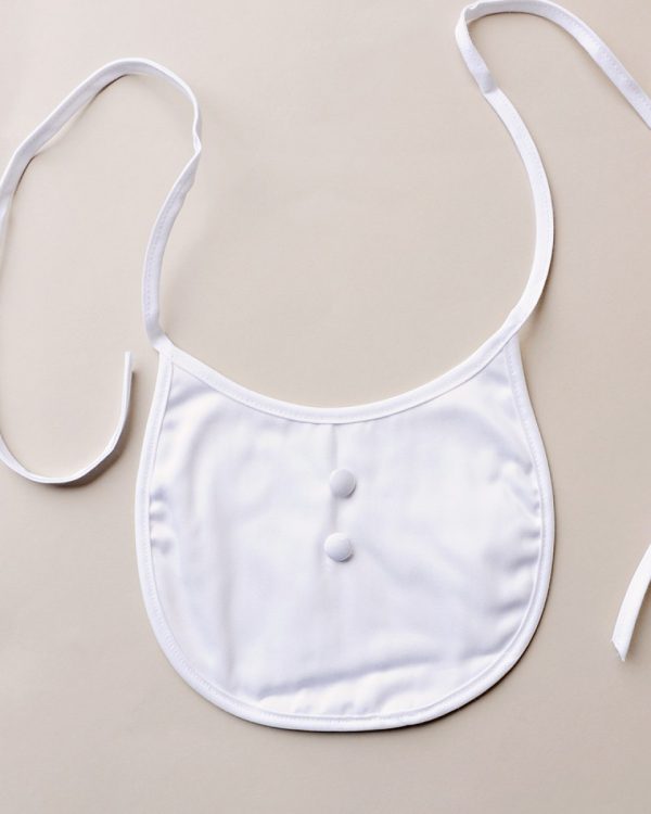 This smartly sophisticated bib is perfect for your little guy’s special day.