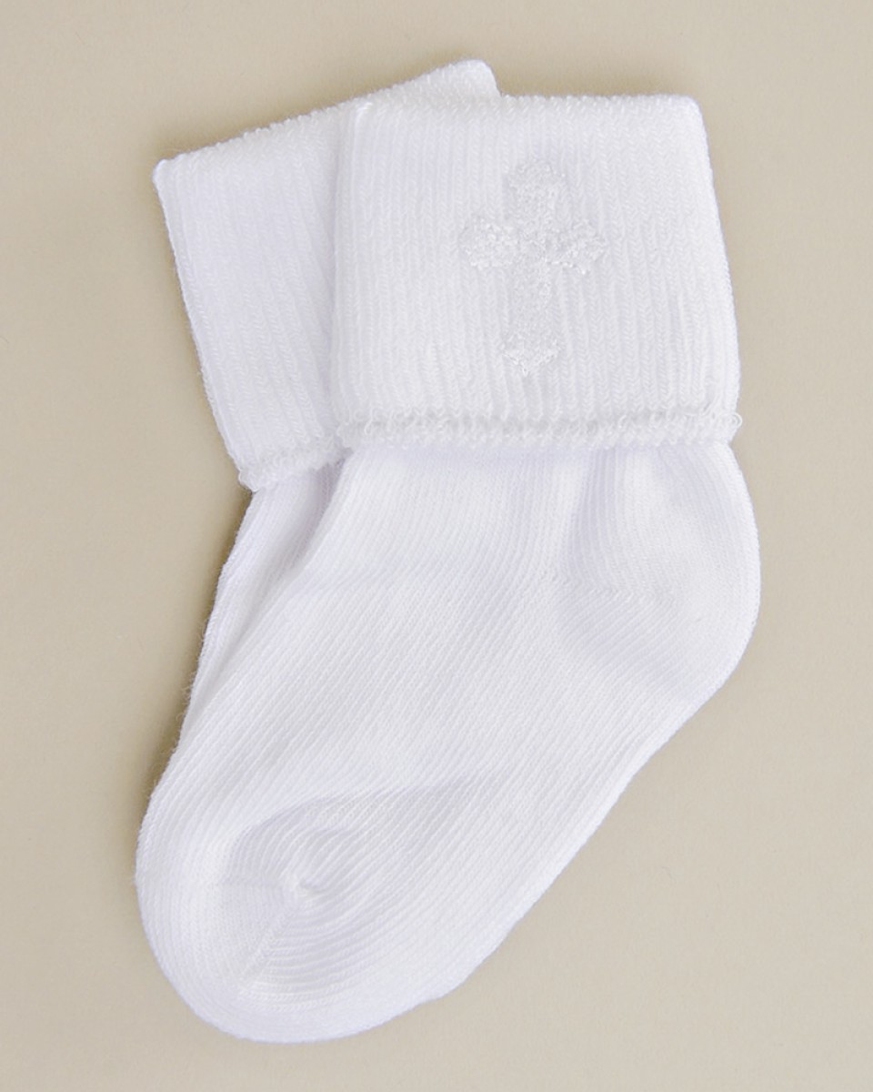 Our simple dress socks display a subtle expression of faith on baby’s special day.
