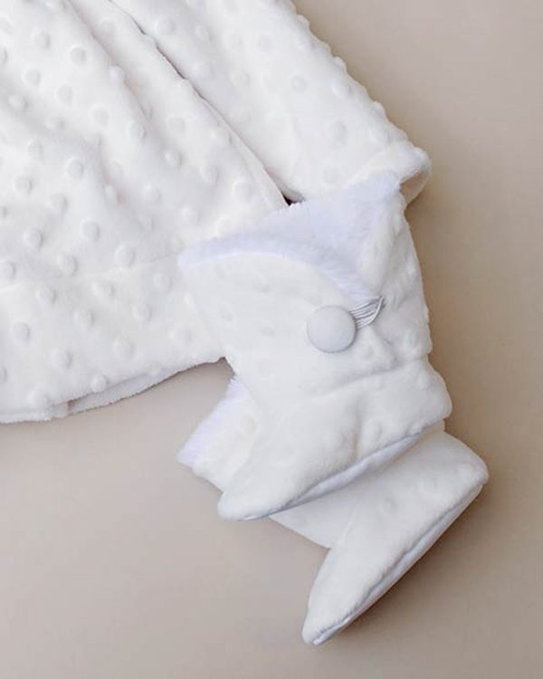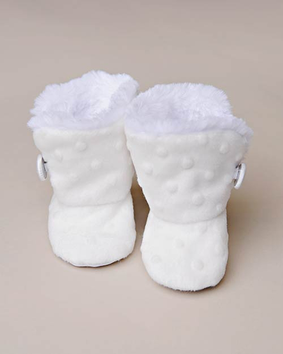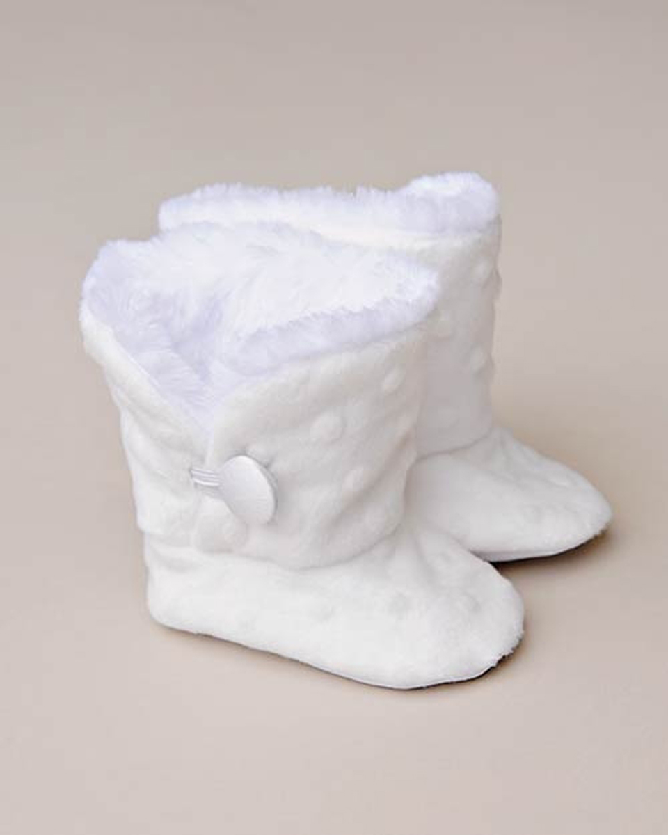 Keep her tiny feet warm in plush style and comfort. These “to-die-for” Minky dot boots are as functional as they are cute!