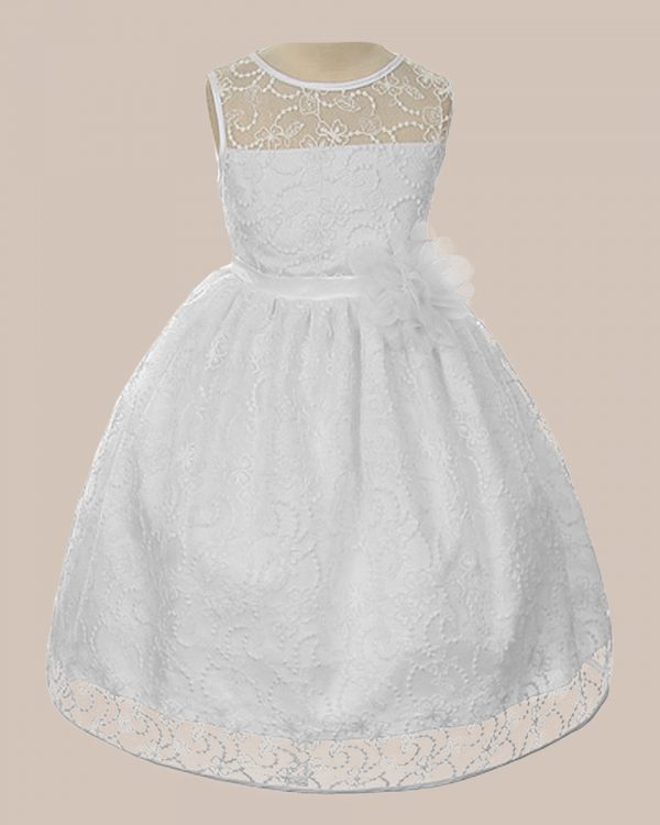 Shop One Small Child » Elegant White Lace Overlay Dress with Flower