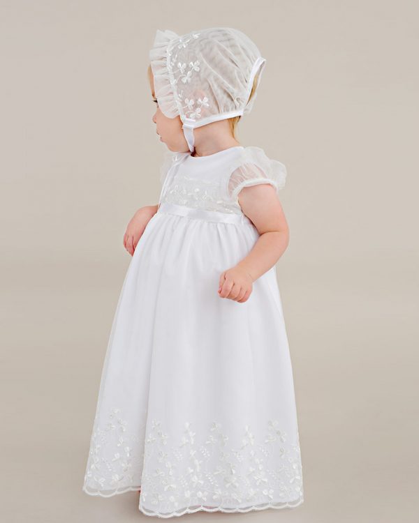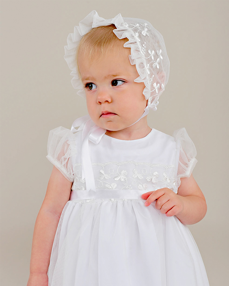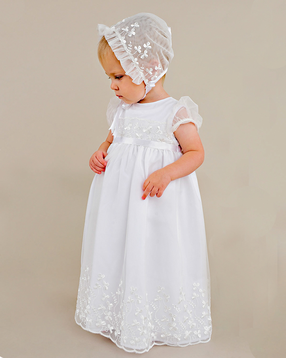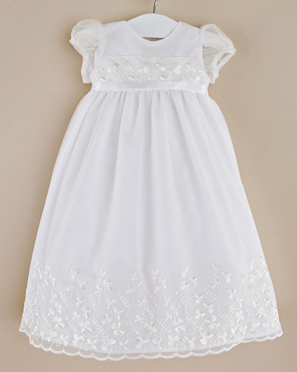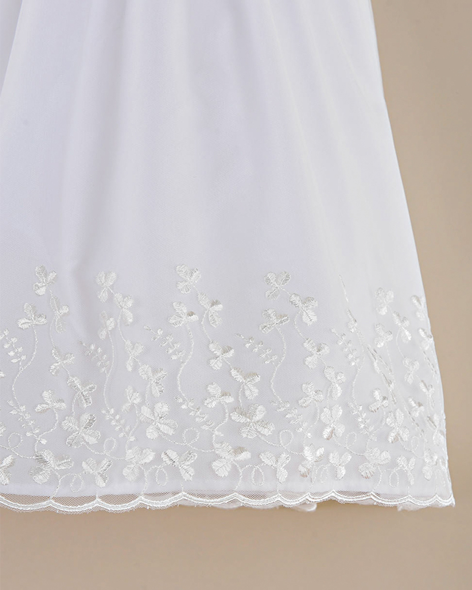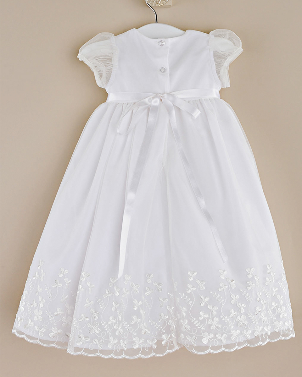Dress your lucky charm in our beautiful shamrock embroidered christening dress!