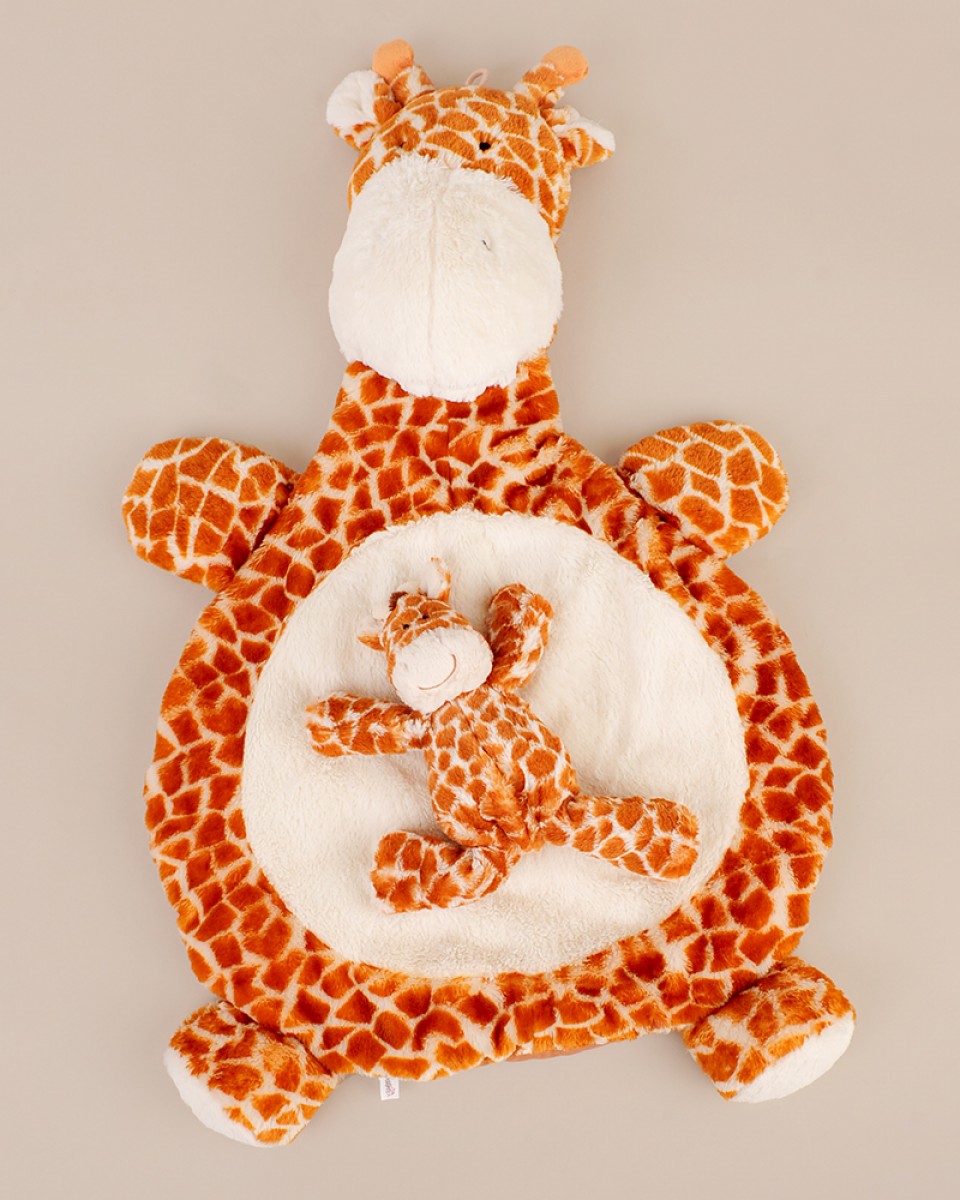 • 2 piece set: giraffe tummy mat and plush giraffe