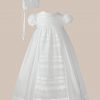 Beautiful girls 100% cotton gown with Venice lace. The gown measures 26 inches in length; includes a matching bonnet. Heirloom Preservation Bag recommended for long-term storage. This elegant gown is perfect for Christening, Baptism, or any special occasion such as weddings, church presentations, dedications, and keepsake photos. Please see our size chart in the images for accurate measurements. (CO08GS)