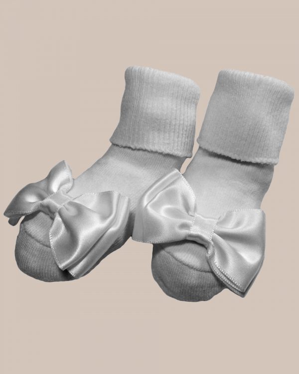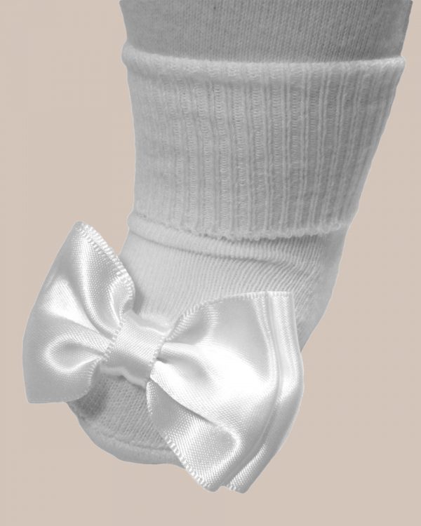 100% Cotton girls socks with a large beautiful bow on the toe. High quality girls socks perfect for Christening, Baptism or any other special occasions.