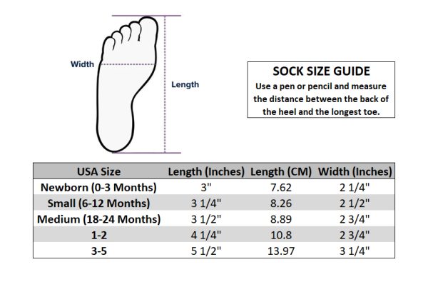 | Sock Sizing | 1 – 2, 3 – 5, Medium (13-17 lbs), Newborn (6-9 lbs), Small (9-13 lbs) |