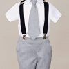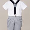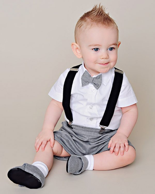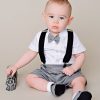 This little newsboy suspender outfit would make anyone stop and admire your little man.